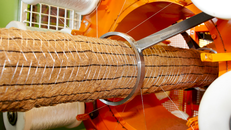 Our production plant wraps drainage pipes (flexible and fixed) with a filter consisting of loose fibres or preproduced mats at a speed of up to 40 m per minute. Drainage filters enhance water transportation and do not clog. Various synthetic and natural filter materials are used depending on the soil conditions present.