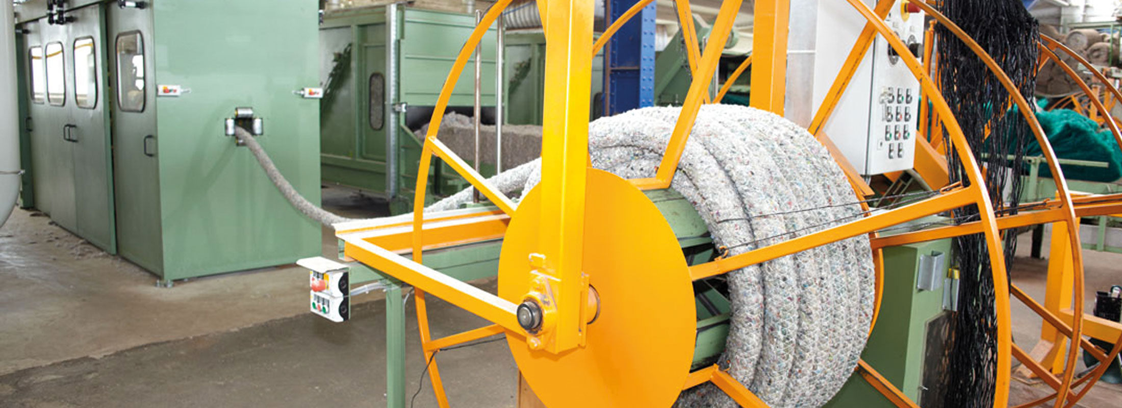 Die automatische Aufwickelvorrichtung wickelt die hergestellten Matten kontinuierlich, ohne Unterbrechung der Produktion, zu sehr kompakten Rollen auf.
